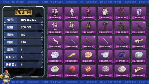 【区服】安卓QQ【等级】Lv.31【段位】坚韧铂金Ⅱ【历史总热力值】8035【时装总数】139【套装数量】29【红粉套装数量】1【枪械数量】25【红粉枪械数量】1【战备数量】23【装备数量】44...