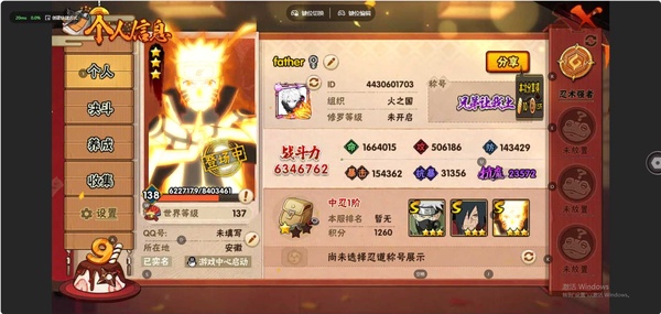 忍者:27S 36A 战力:12156795 通灵有熊猫 蛞蝓 大象 秘卷近乎全满 暗部以下随便纯无脑冲
